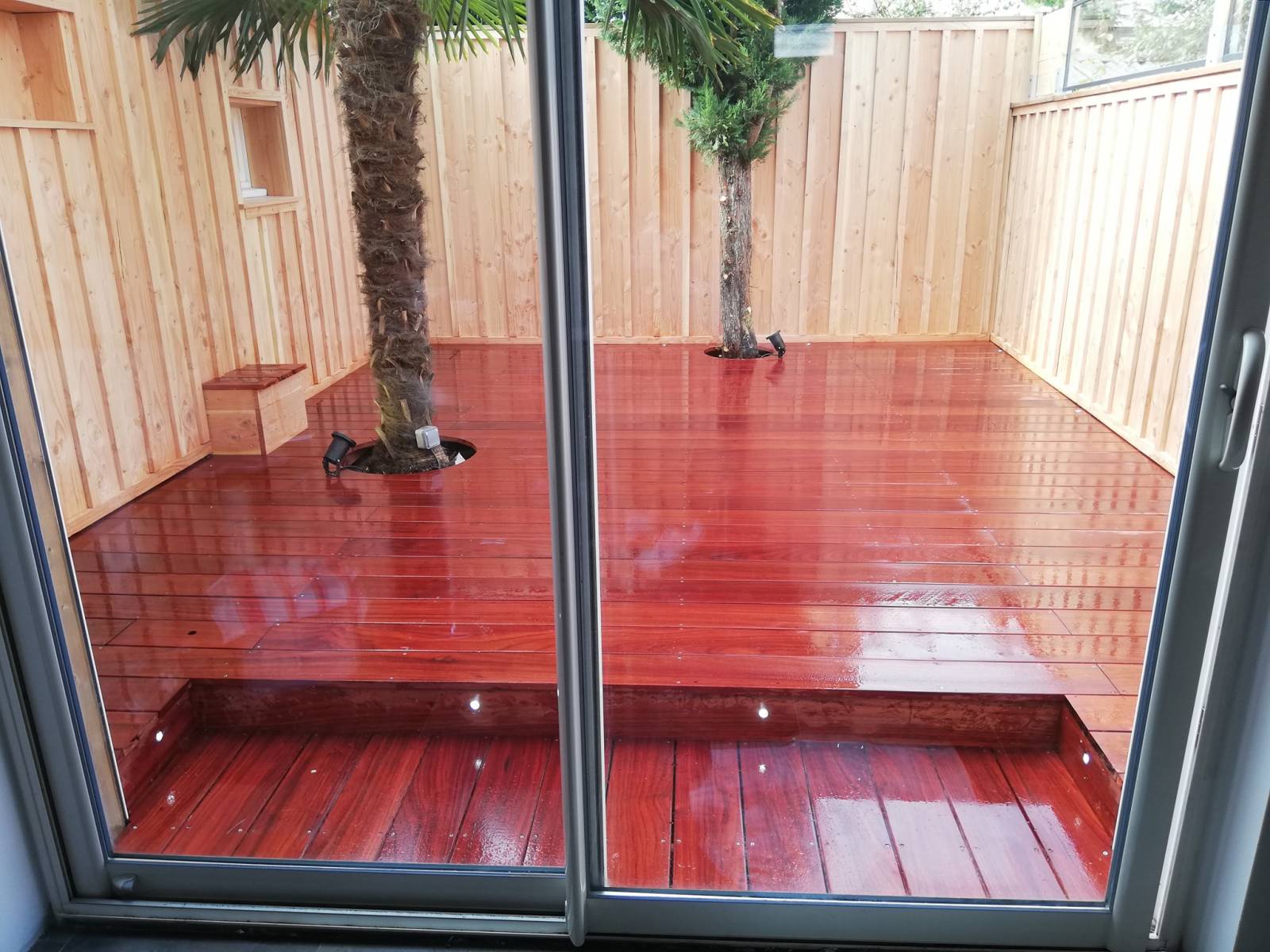 LS Menuiserie spécialiste de l'aménagement extérieur vous présente ce magnifique projet réalisé à Bordeaux en Gironde d'une terrasse bois exotique en padouk.