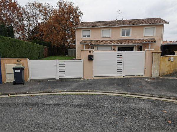 Ce chantier a constitué à faire une pose de deux portails en aluminium avec l'un (le plus petit) qui s'utilise manuellement et le second (le plus grand) qui est connecté et motorisé avec l'équipement Somfy afin de facilité son ouverture et son accès.