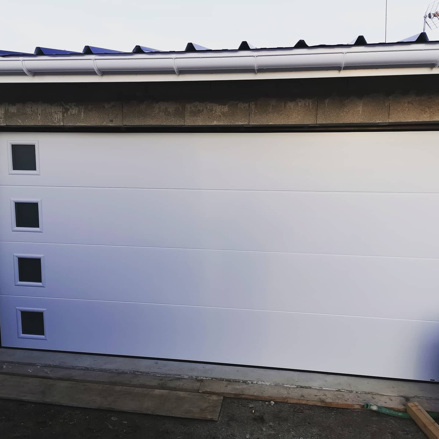 sur mesure d'une grande largeur pour facilité l'accés au garage avec insert vitrée pour apporter un petit peu de lumière supplémentaire dans votre garage.